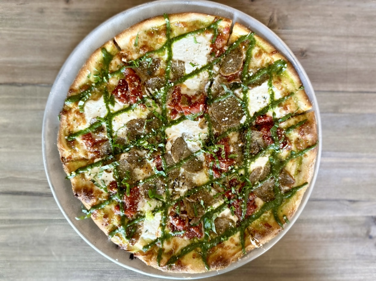 MEATBALLS, MOZZARELLA, GRANDMA'S SAUCE, RICOTTA, PESTO & FRESH BASIL
